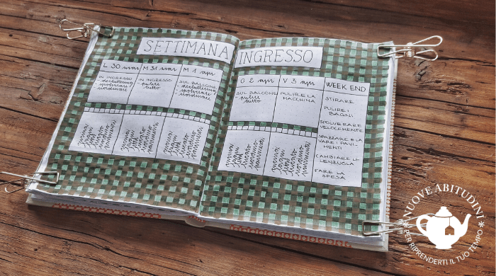 Aprite il vostro taccuino, prendete la penna e disegnate una tabella simile alla mia (potete utilizzare un qualsiasi vecchio quaderno che avete in casa, oppure – se vi va – potete dare un’occhiata a quelli che realizzo io a mano 😊😊):